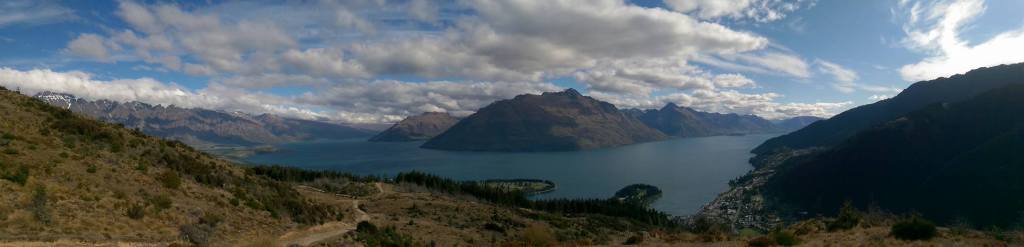 The various flights I took over New Zealand were the most incredible I’ve ever experienced. I stared out of the window as we swept over vista upon amazing vista, so much so that I got a crick in my neck. Upon disembarking, Lynsey was there to greet me with her wonderful smile and I immediately felt that amazing sensation of being in the company of someone who just ‘gets’ you. This feeling of contentment was, however, in danger of dissipating rather briskly when instead of driving me to the nearest open bottle of wine for a natter, Lynsey thought it would be ‘fun’ – her words, not mine – to first go for a hike up Queenstown Hill. A hike! I’d just schlepped four hours on a plane, and let’s not forget the 24 hours I’d spent on planes just a few days previously to get to that side of the planet in the first place. However, following a quick change in a public car park, using both Lynsey and the car door as a modesty curtain, my tiredness soon ebbed away as with each step taken, the view became more and more stunning.