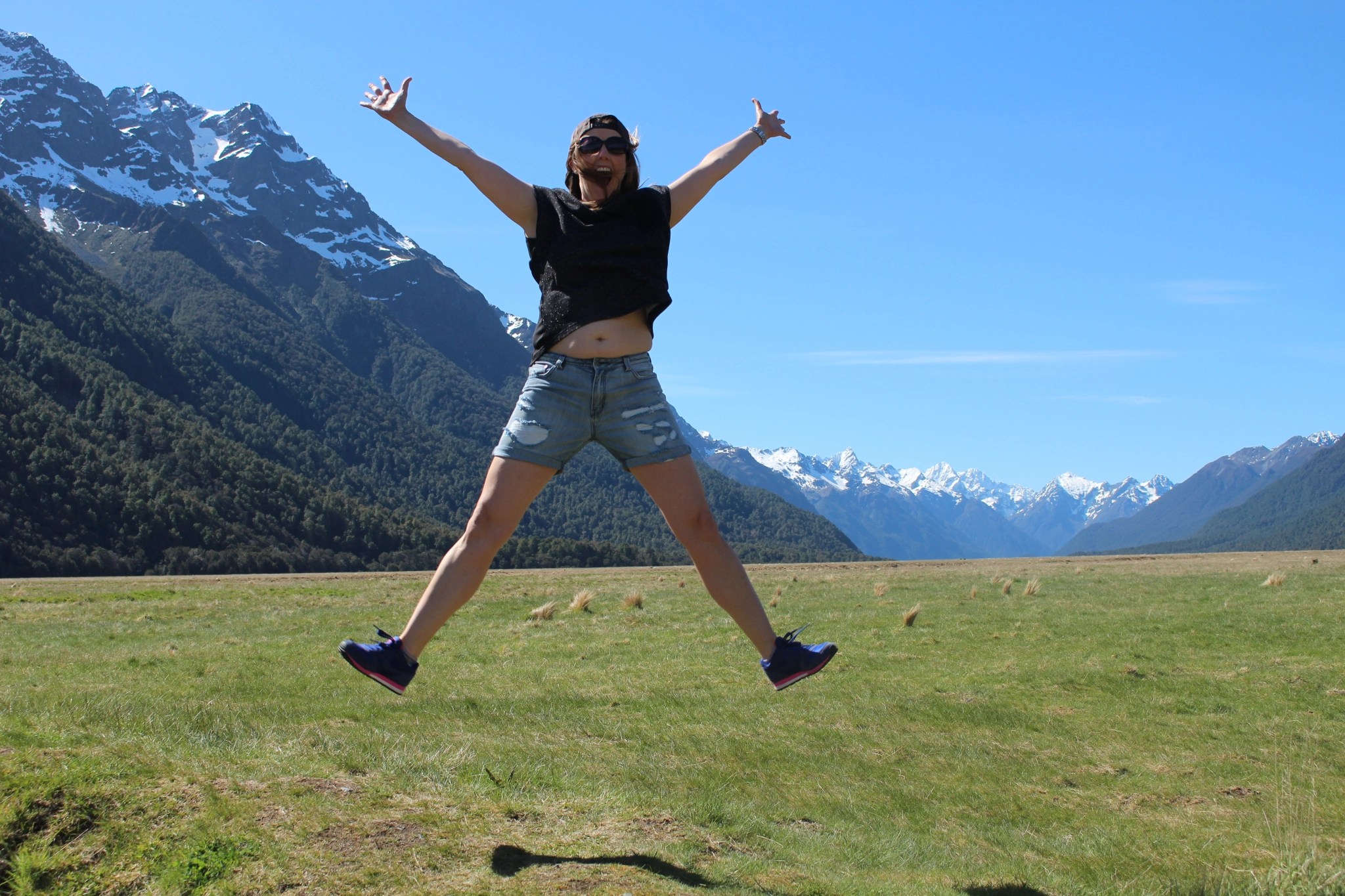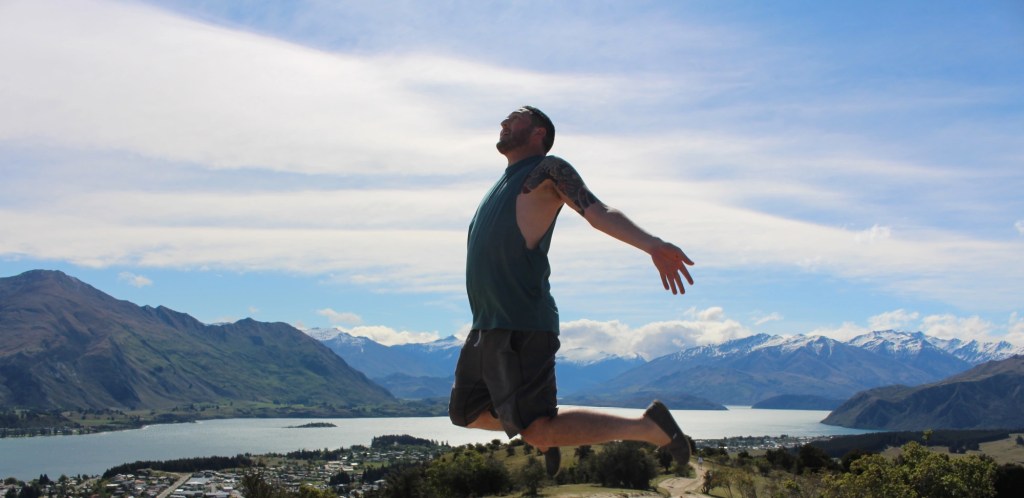 We soon reached the summit, where we were greeted by the ‘Basket of Dreams’, which seemed rather apt considering that after just a few hours on New Zealand soil my dreams were indeed coming true. We treated ourselves to a lay down and a wee natter before we re-energised ourselves in our favourite manner: JUMPING!
